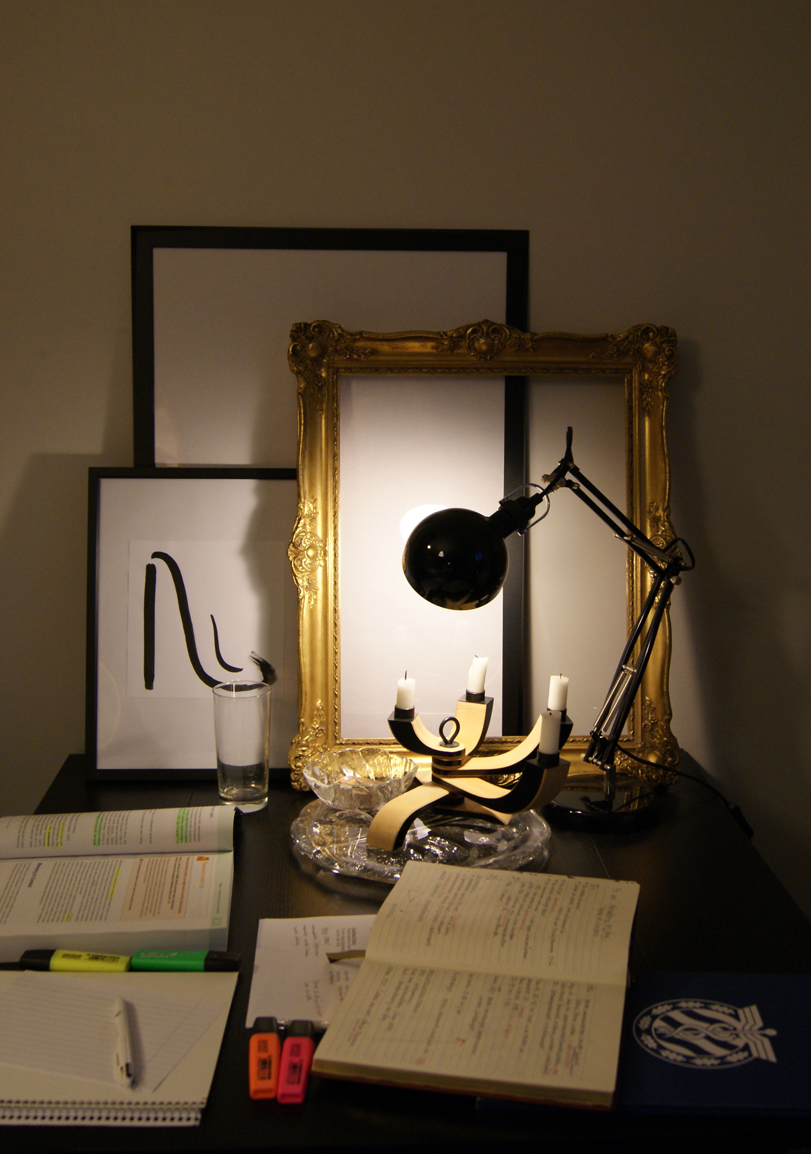 Den här bloggen har förvandlats till en plugghästs memoarer men det är ungefär det mitt liv handlar om just nu. Min vardag har varit så fruktansvärt okreativ den senaste tiden att jag liksom bubblar över eftermiddagar som denna. Däremot hann jag måla en tavla i onsdags kväll – det har stått en svart ram utan innehåll på mitt köksbord sedan jag flyttade hit och i onsdags fick jag nog och gjorde om köksgolvet till en ateljé och blandade färg i decilitermått.